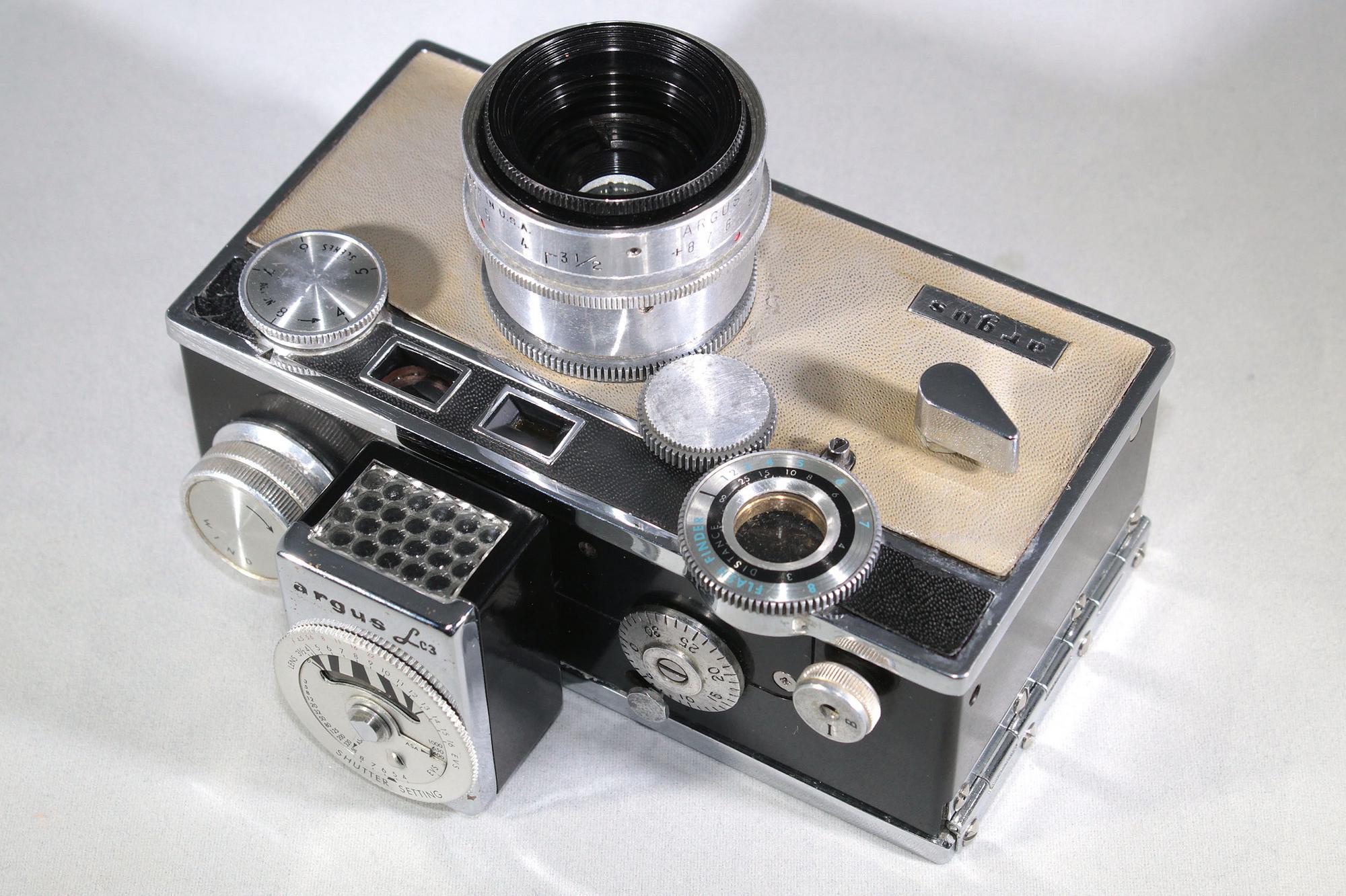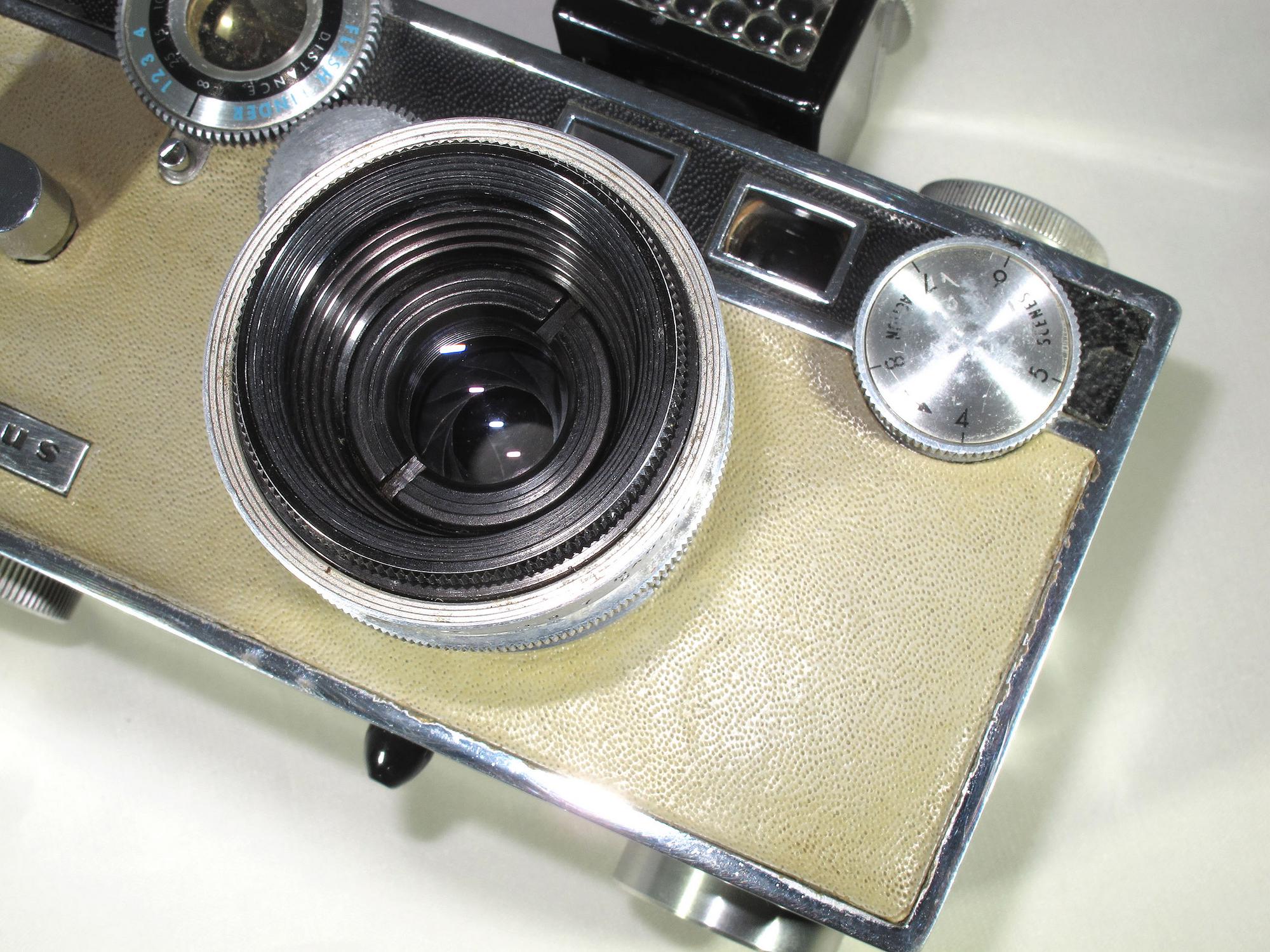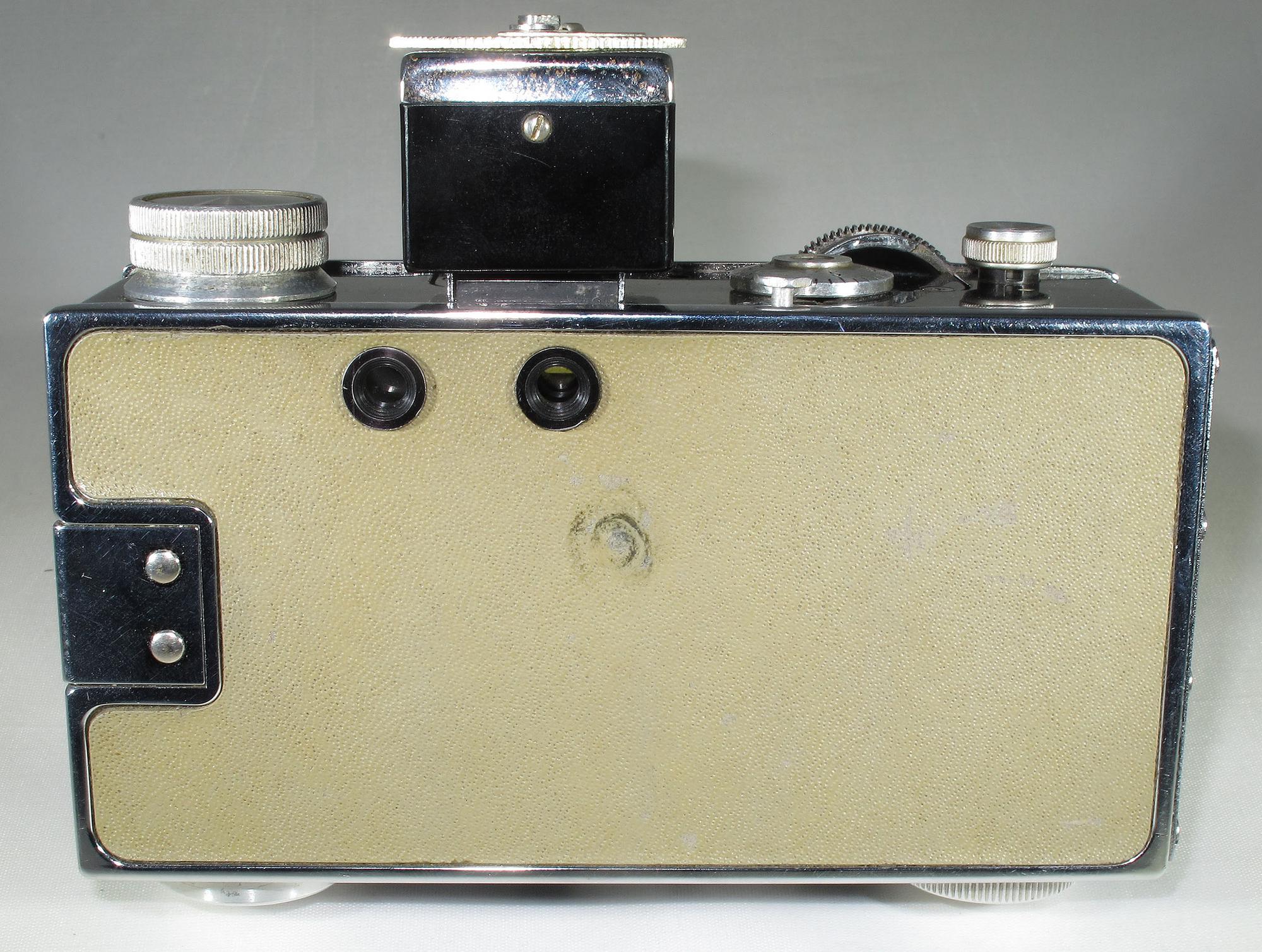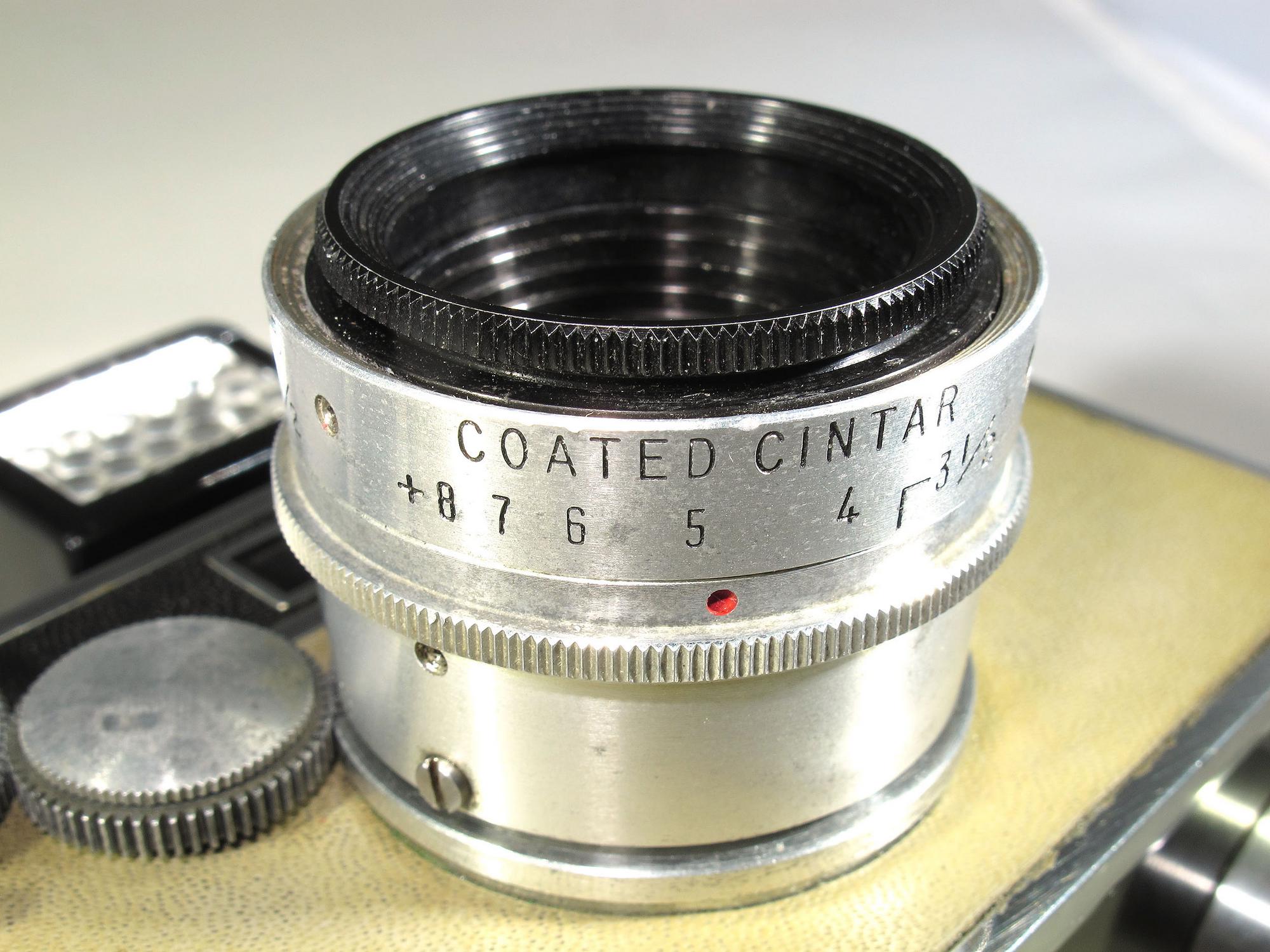 … This is a Coupled Split Window Rangefinder camera with a 50mm f/3.5 coated Cintar 3 elements, B, 1/10 – 1/300 seconds and Selenium Accessory Shoe. Uses 35mm film cartridges.