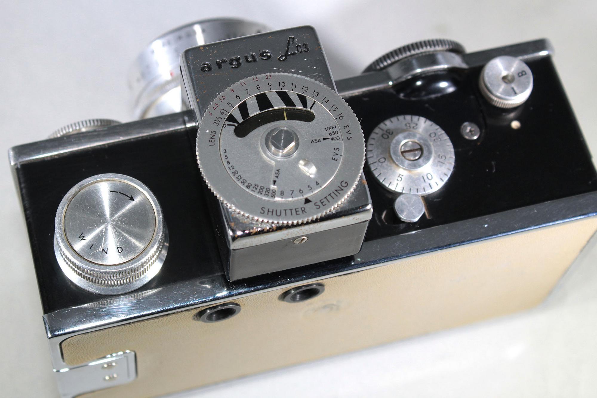 Our observations: Shutter gets stuck at the lowest #4 setting speed in dial, all other speeds seem consistent. Unfortunately we weren’t able to revive the selenium meter as it constantly gets stuck… perhaps the next owners may have more luck. Exterior looks worn out due to age or normal use, some of the corners are peeling apart from body. It may be possible to specially treat or replace covering as with the popularity this camera has among “new” collectors, Whole or pre-cut coverings can be found in different colors.